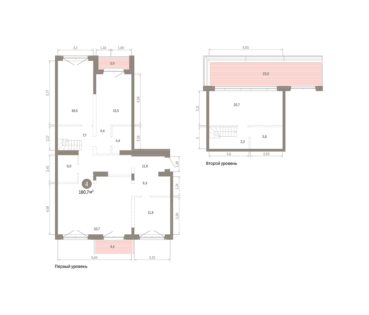 Площадь (общ/жил/кух), м2: 180.66/54.78/32.68