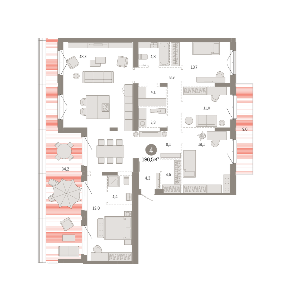 Купить новую четырехкомнатную квартиру 196.54 м² на 7/7 этаже в ЖК «Кварталы «На Минской»», г. Тюмень за 35080000 ₽ | Агентство недвижимости «Вплюсе.Топ» — Агентство недвижимости "Вплюсе.Топ"