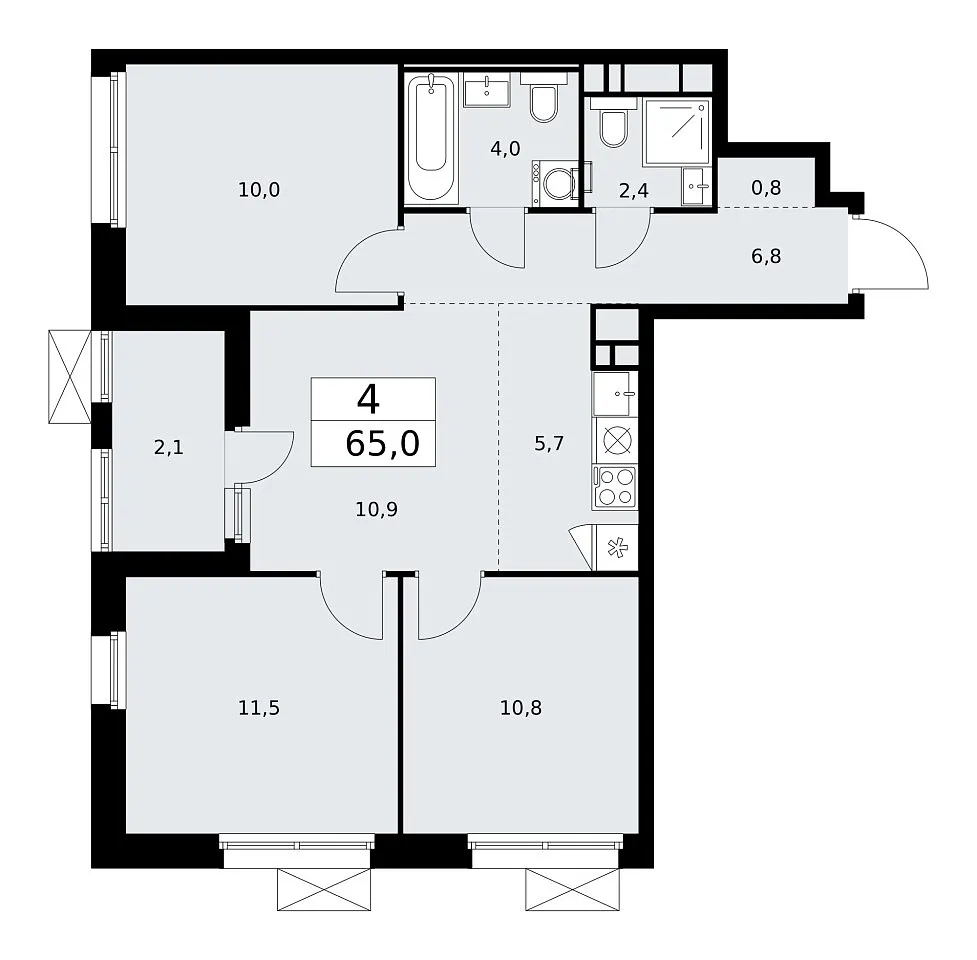Количество комнат: 4, 65 кв.м.