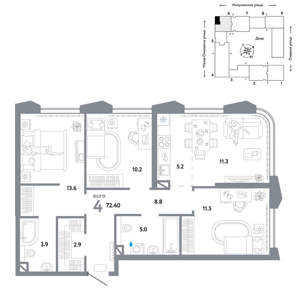 Купить новую четырехкомнатную квартиру 72.4 м² на 10/30 этаже в ЖК «Страна.Озёрная», г. Тюмень за 44386666 ₽ | Агентство недвижимости «Вплюсе.Топ» — Недвижимость России