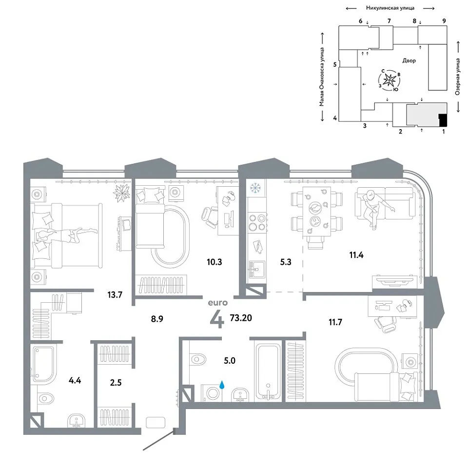 Купить новую четырехкомнатную квартиру 73.2 м² на 30/30 этаже в ЖК «Страна.Озёрная», г. Тюмень за 59320000 ₽ | Агентство недвижимости «Вплюсе.Топ» — Недвижимость России