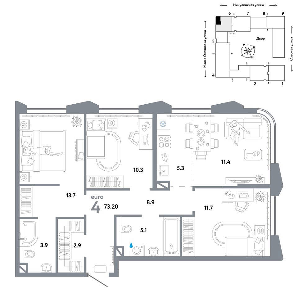 Купить новую четырехкомнатную квартиру 73.2 м² на 19/30 этаже в ЖК «Страна.Озёрная», г. Тюмень за 41986667 ₽ | Агентство недвижимости «Вплюсе.Топ» — Недвижимость России