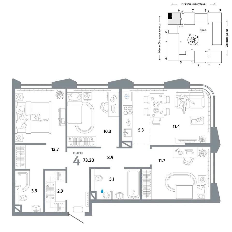 Купить новую четырехкомнатную квартиру 73.2 м² на 26/30 этаже в ЖК «Страна.Озёрная», г. Тюмень за 52120000 ₽ | Агентство недвижимости «Вплюсе.Топ» — Недвижимость России