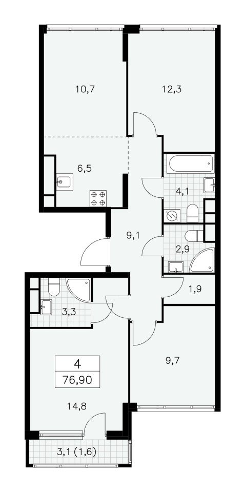 Количество комнат: 4, 76.9 кв.м.