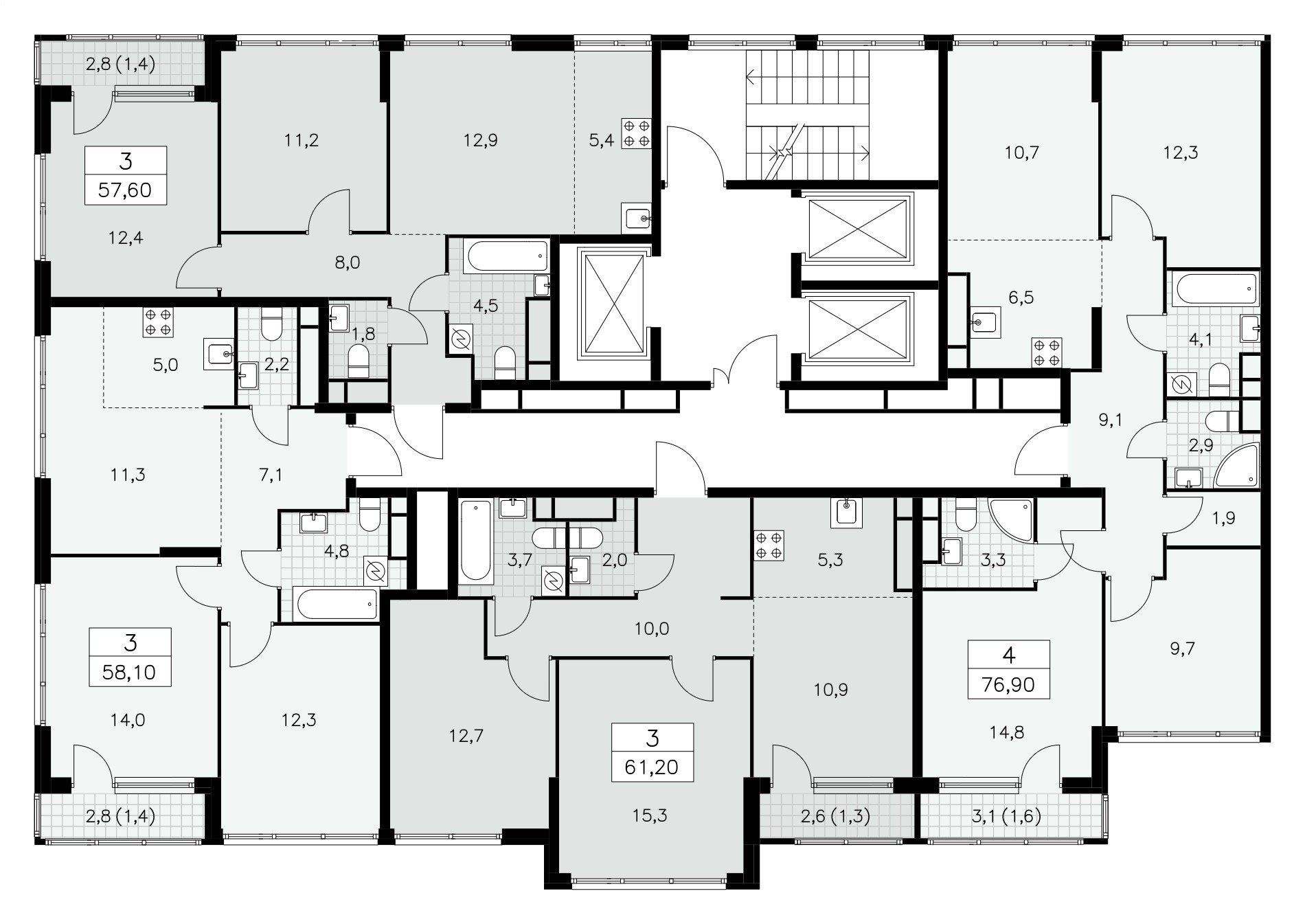 Общая площадь 76.9 м2