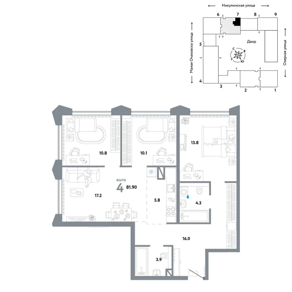 Купить новую четырехкомнатную квартиру 81.9 м² на 23/30 этаже в ЖК «Страна.Озёрная», г. Тюмень за 47586667 ₽ | Агентство недвижимости «Вплюсе.Топ» — Недвижимость России