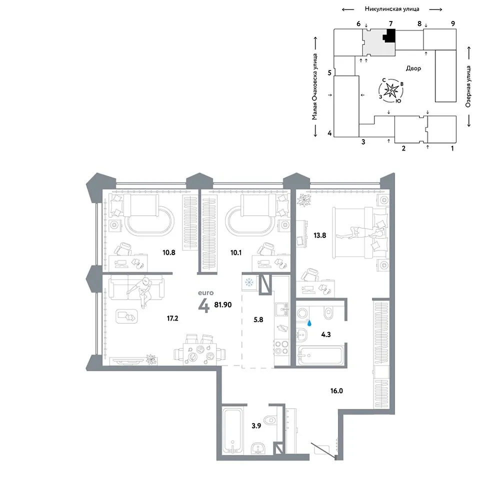 Количество комнат: 4, 81.9 кв.м.
