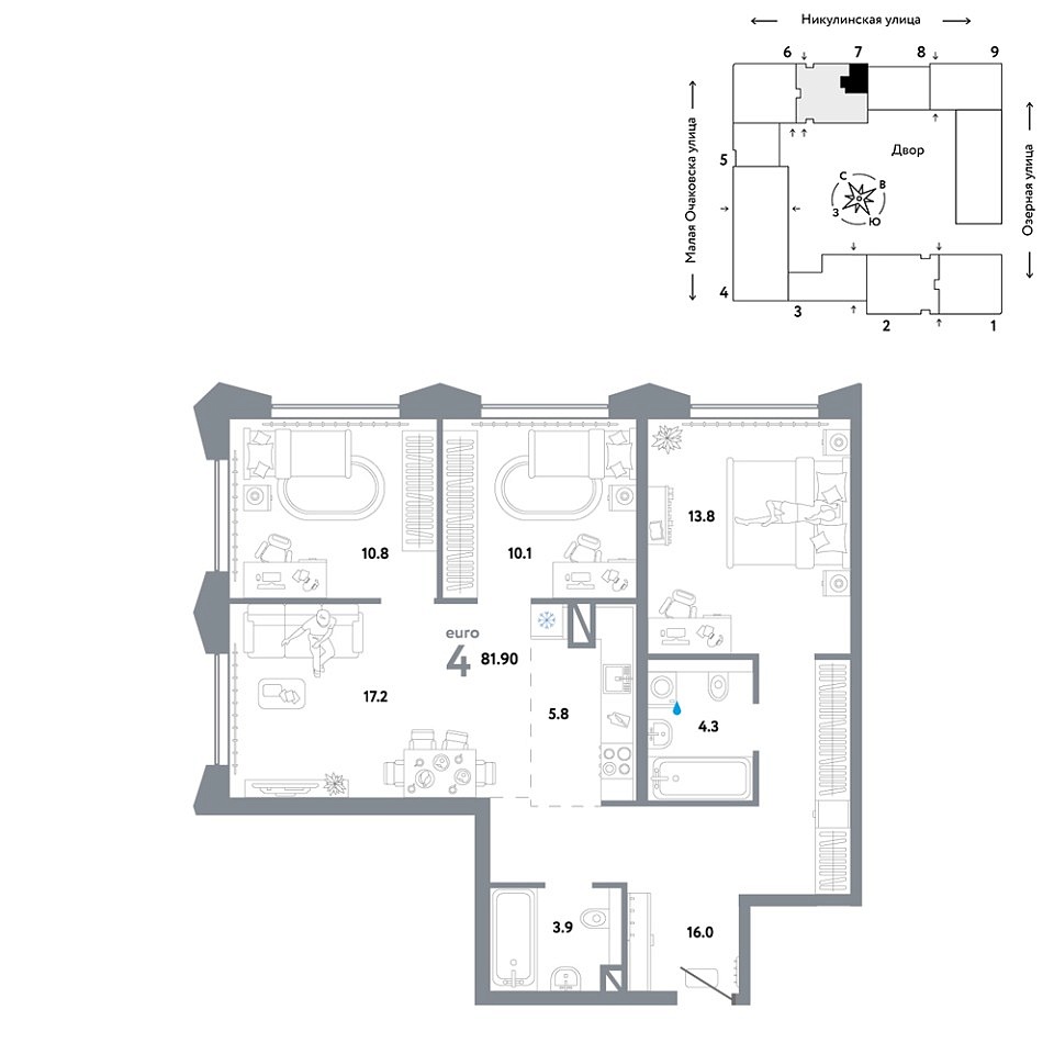 Купить новую четырехкомнатную квартиру 81.9 м² на 19/30 этаже в ЖК «Страна.Озёрная», г. Тюмень за 43986667 ₽ | Агентство недвижимости «Вплюсе.Топ» — Недвижимость России