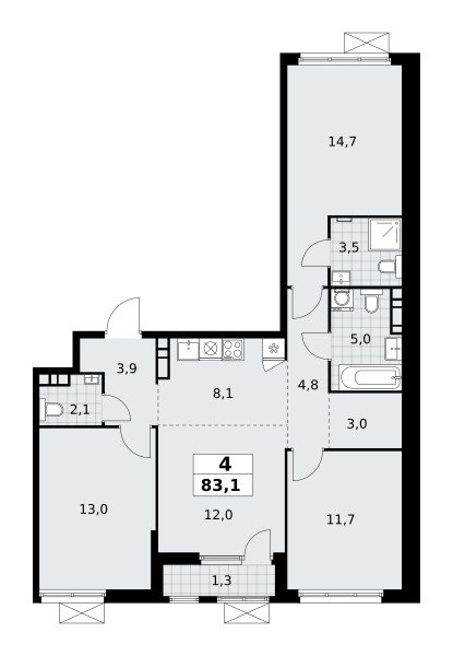 Площадь (общ/жил/кух), м2: 83.1/—/8.1