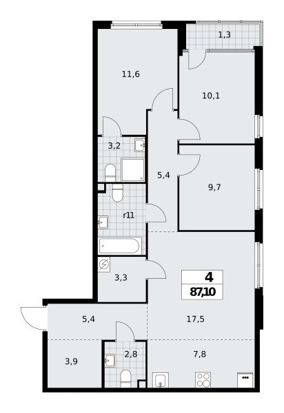 Площадь (общ/жил/кух), м2: 87.2/—/7.4