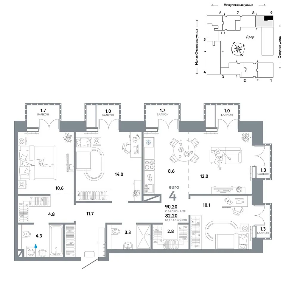 Купить новую четырехкомнатную квартиру 90.2 м² на 7/30 этаже в ЖК «Страна.Озёрная», г. Тюмень за 63320000 ₽ | Агентство недвижимости «Вплюсе.Топ» — Недвижимость России