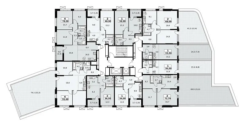 Количество комнат: 4, 91.6 кв.м.