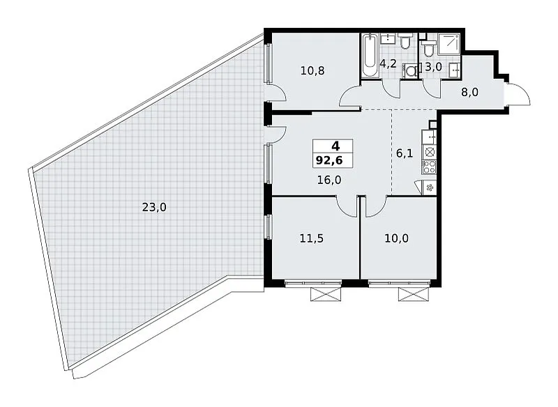 Количество комнат: 4, 92.6 кв.м.