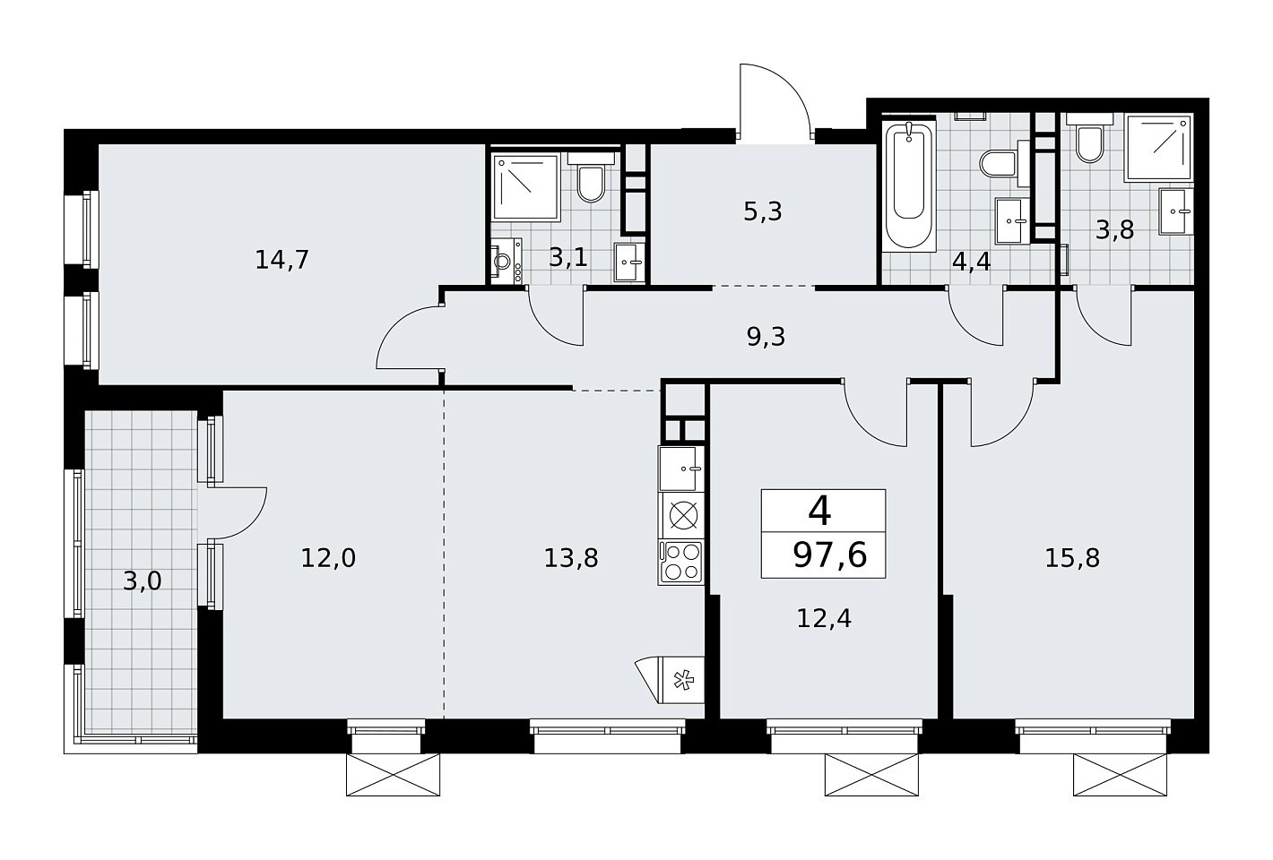 Количество комнат: 4, 97.6 кв.м.