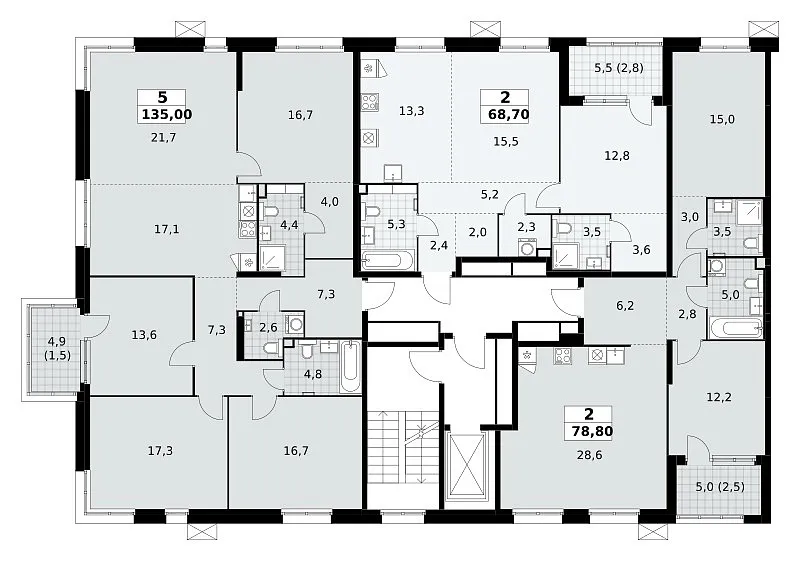 Площадь (общ/жил/кух), м2: 135.9/—/17