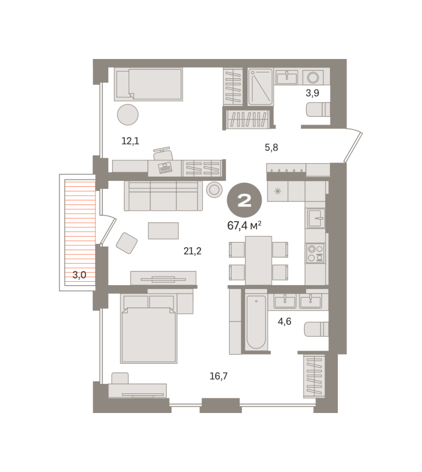 Купить новую двухкомнатную квартиру 67.35 м² на 2/17 этаже в ЖК «Первый квартал», г. Тюмень за 11470000 ₽ | Агентство недвижимости «Вплюсе.Топ» — Агентство недвижимости "Вплюсе.Топ"