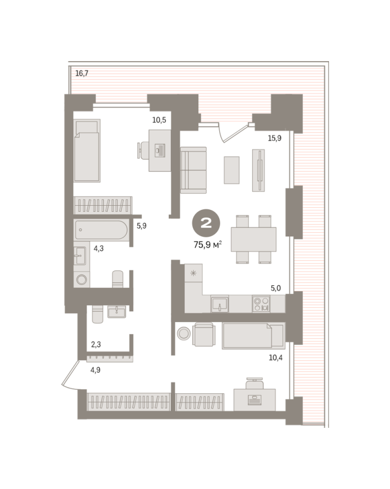 Купить новую двухкомнатную квартиру 75.9 м² на 8/9 этаже в ЖК «Речной порт», г. Тюмень за 14940000 ₽ | Агентство недвижимости «Вплюсе.Топ» — Агентство недвижимости "Вплюсе.Топ"