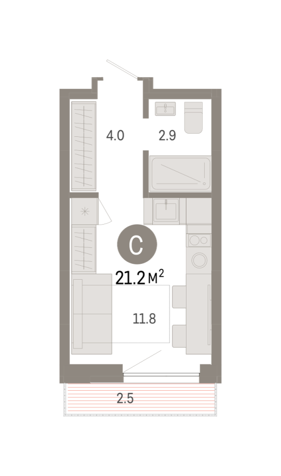 Площадь (общ/жил/кух), м2: 21.01/9.55/5.88