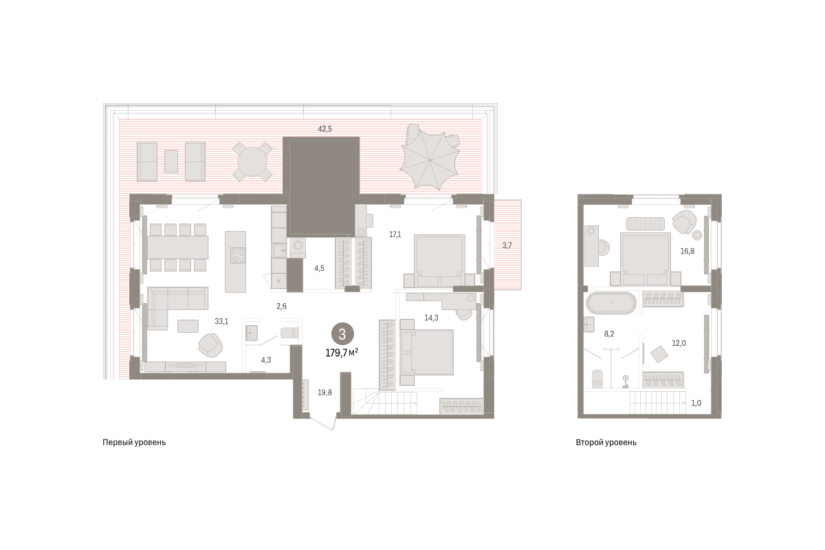 Площадь (общ/жил/кух), м2: 178.93/42.89/53.82