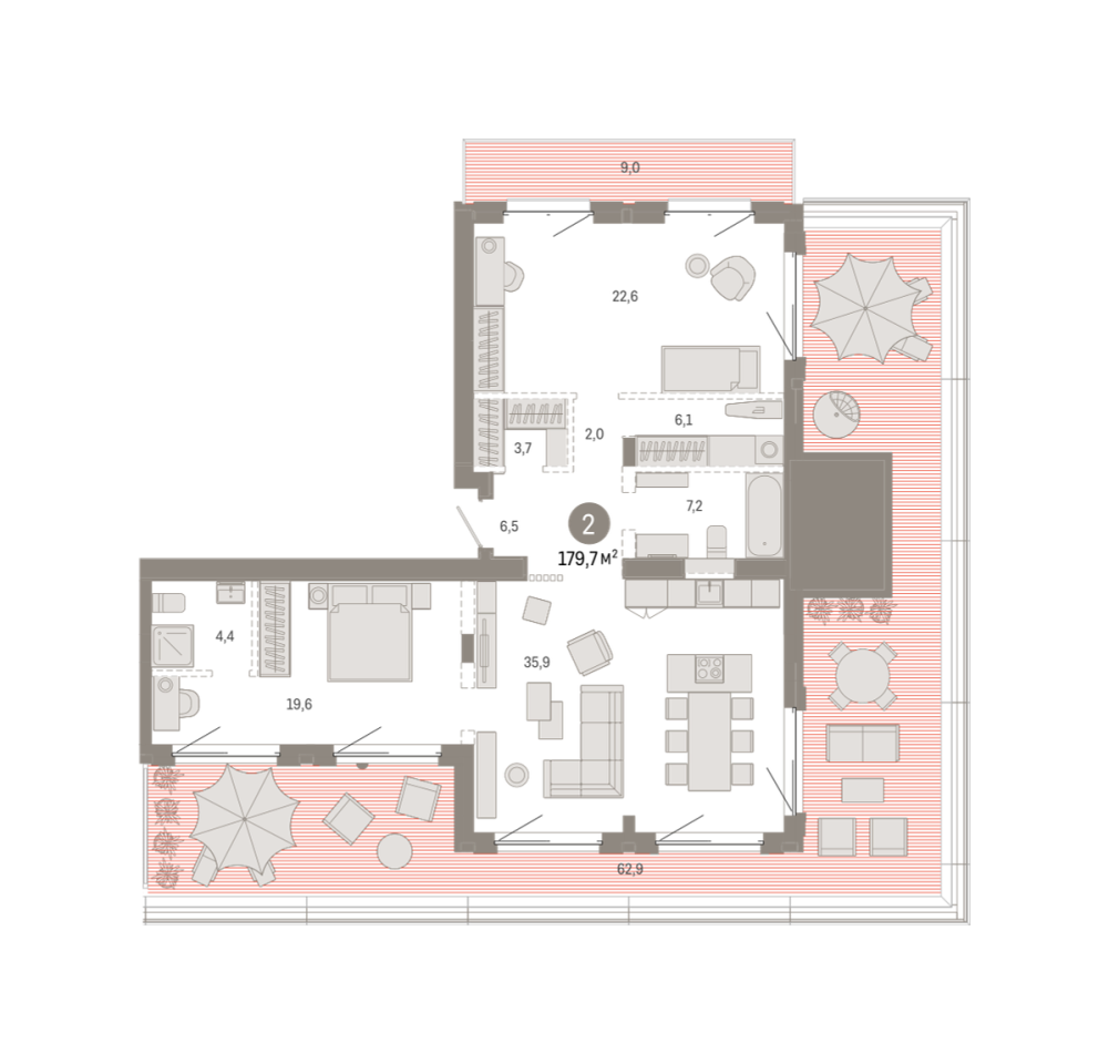 Купить новую двухкомнатную квартиру 179.74 м² на 7/7 этаже в ЖК «Кварталы «На Минской»», г. Тюмень за 25310000 ₽ | Агентство недвижимости «Вплюсе.Топ» — Агентство недвижимости "Вплюсе.Топ"