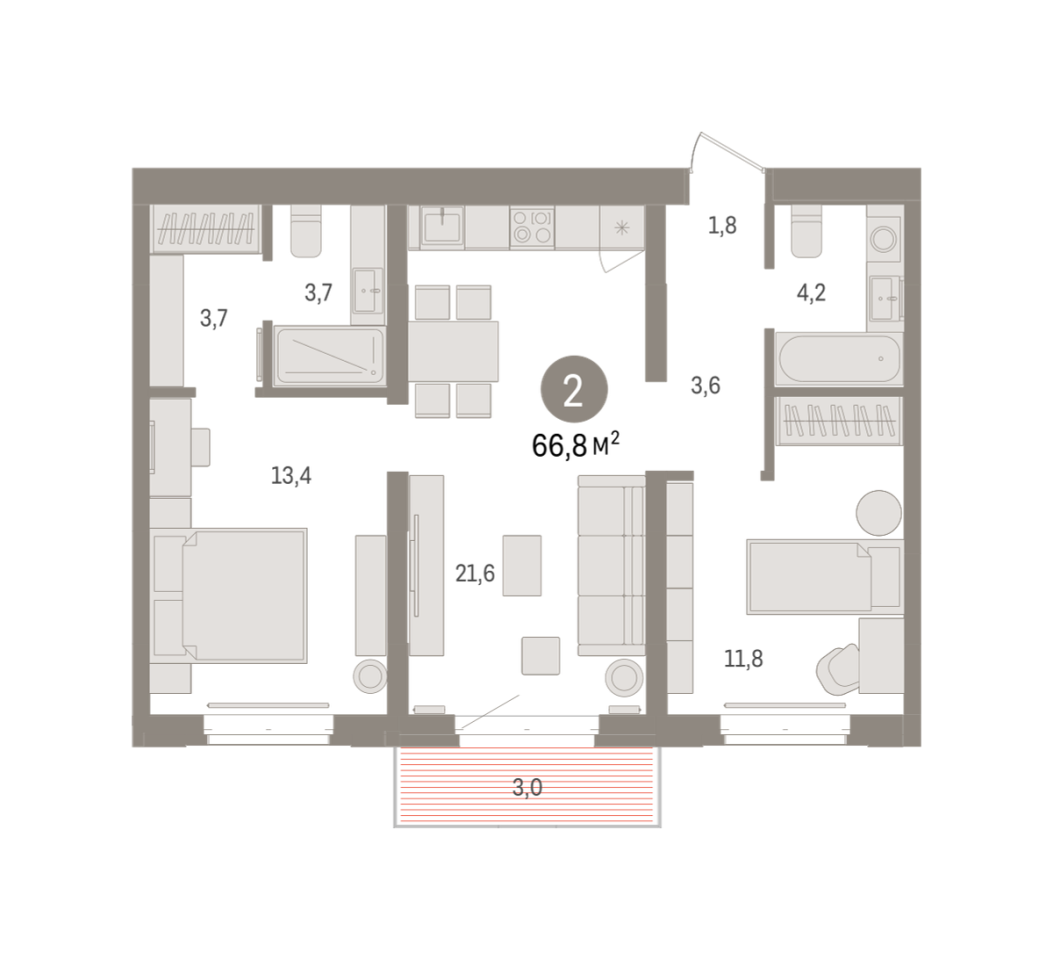 Купить новую двухкомнатную квартиру 66.79 м² на 6/8 этаже в ЖК «Кварталы «На Минской»», г. Тюмень за 12360000 ₽ | Агентство недвижимости «Вплюсе.Топ» — Агентство недвижимости "Вплюсе.Топ"