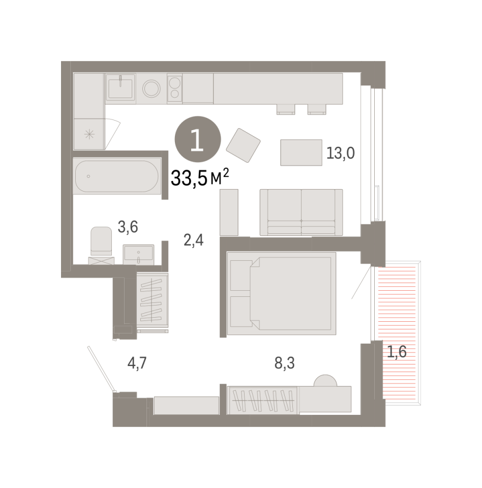 Площадь (общ/жил/кух), м2: 33.53/8.29/12.97