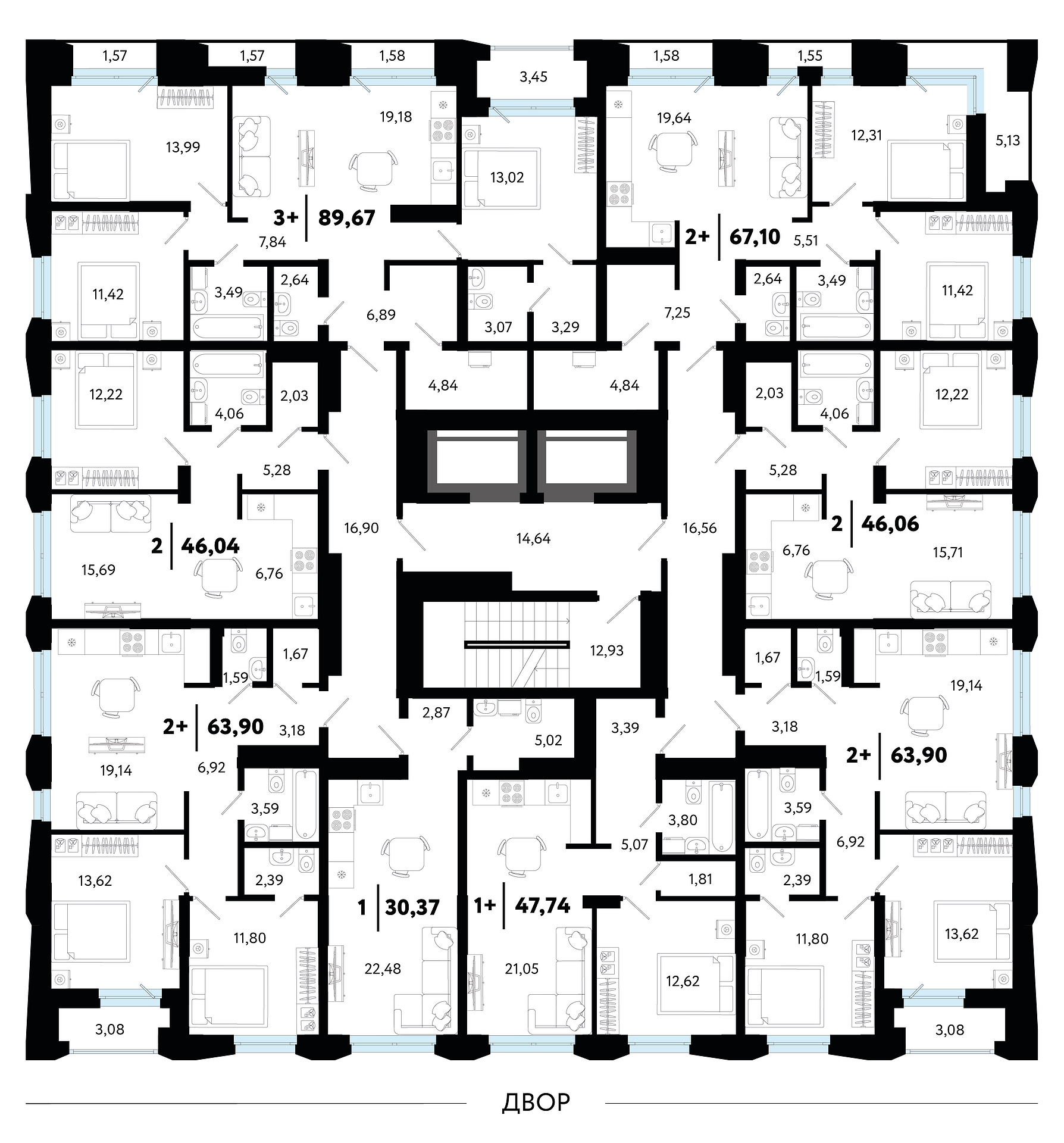 Общая площадь 89.67 м2