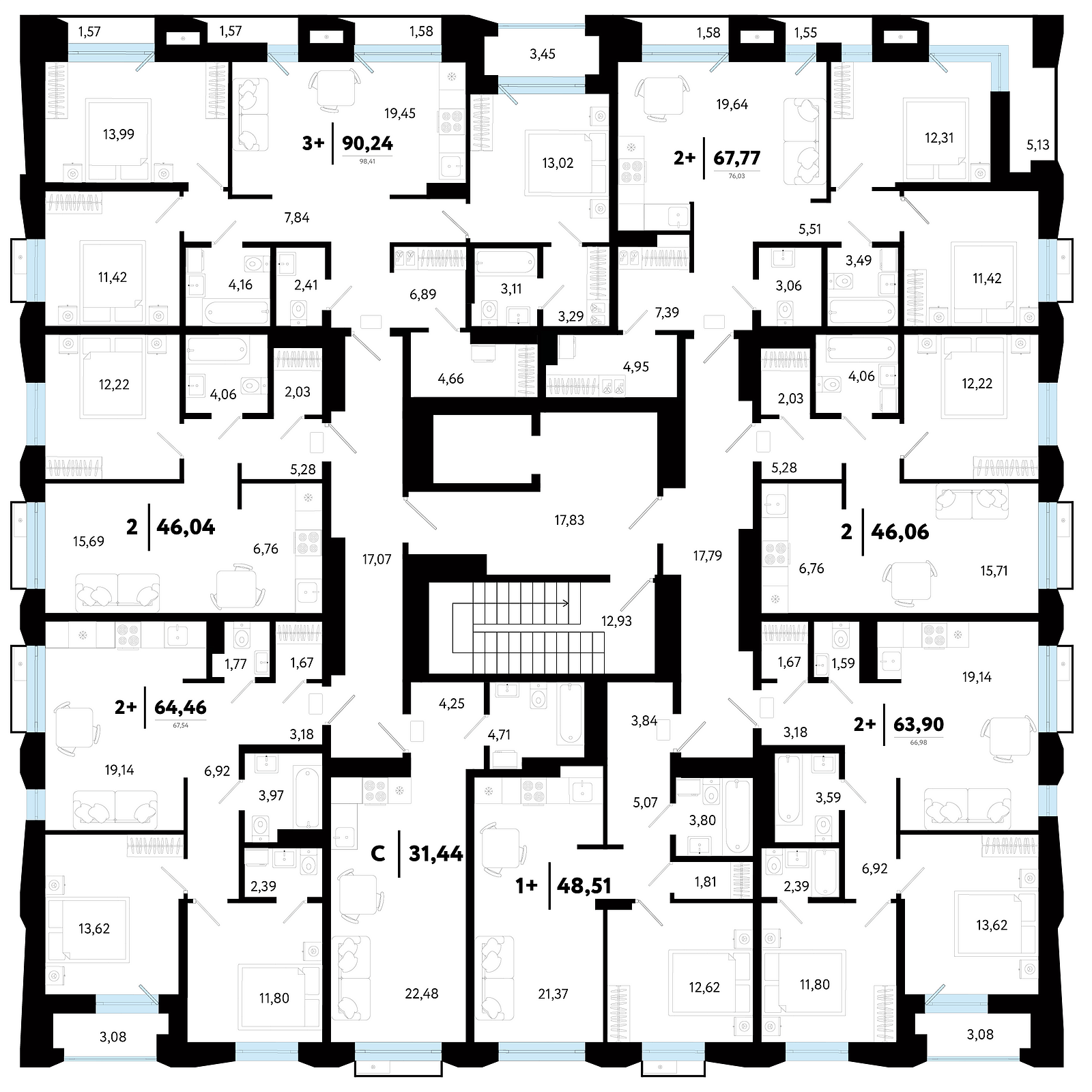 Общая площадь 90.24 м2
