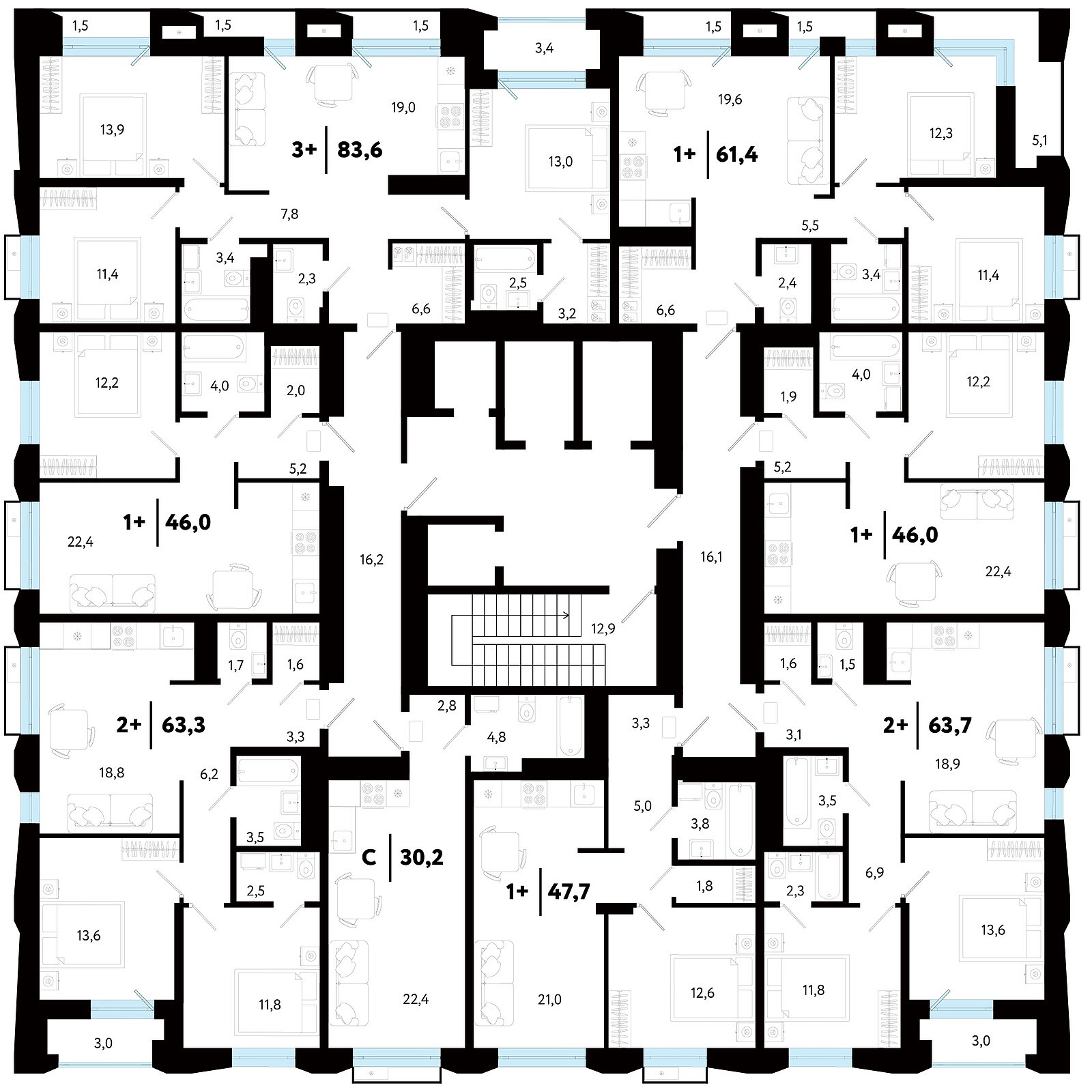 Площадь (общ/жил/кух), м2: 83.65/—/—