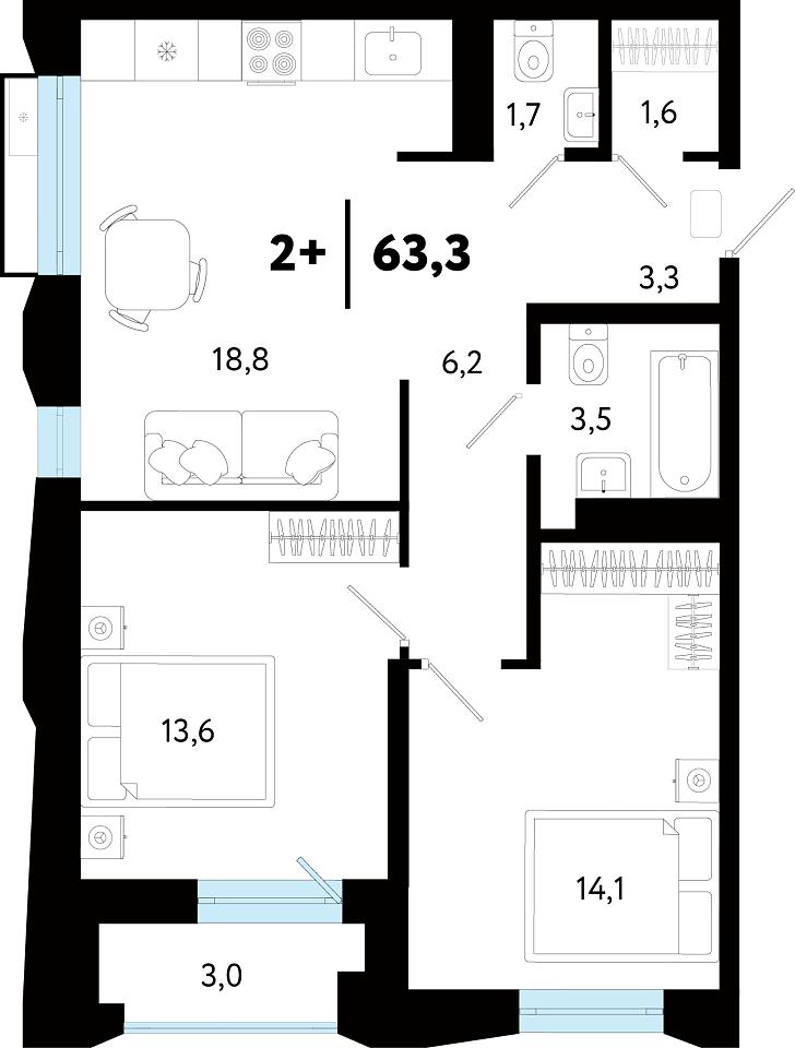 Купить новую двухкомнатную квартиру 63.37 м² на 7/25 этаже в ЖК «Кедровый берег», г. Тюмень за 7850000 ₽ | Агентство недвижимости «Вплюсе.Топ» — Недвижимость России