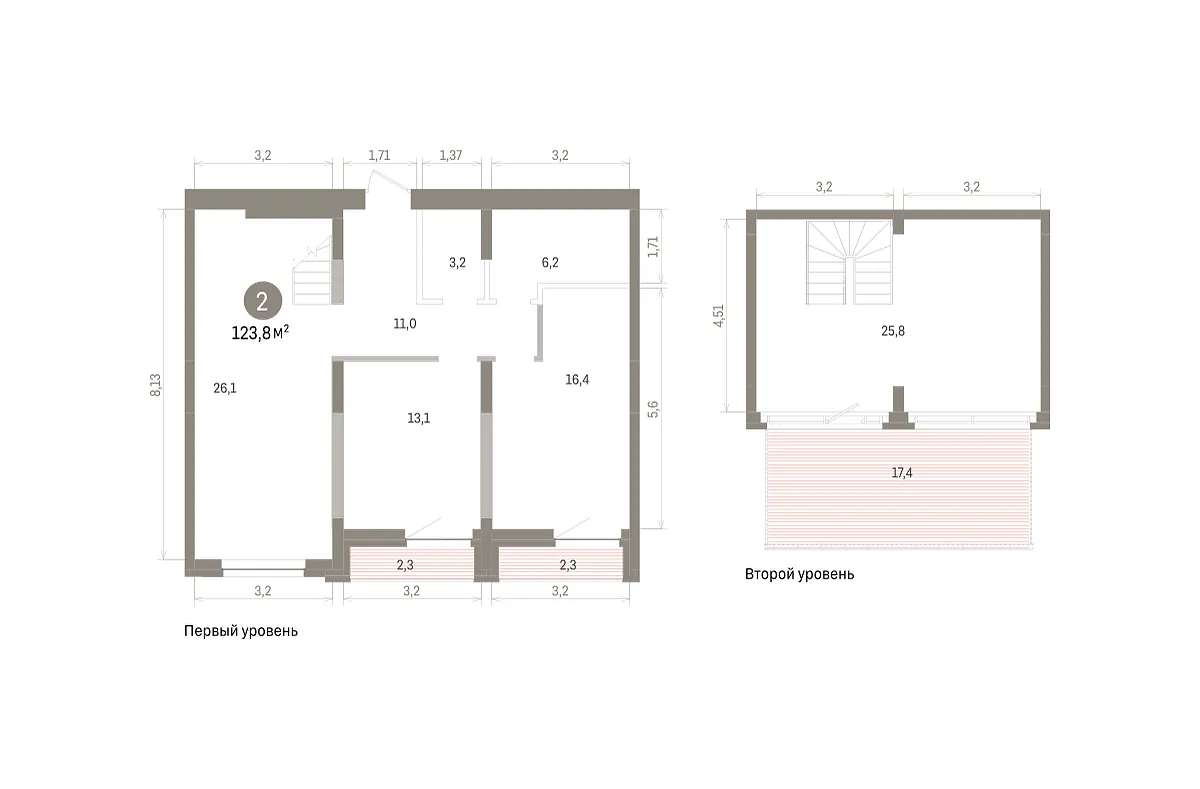 Площадь (общ/жил/кух), м2: 118.5/44.5/41.9