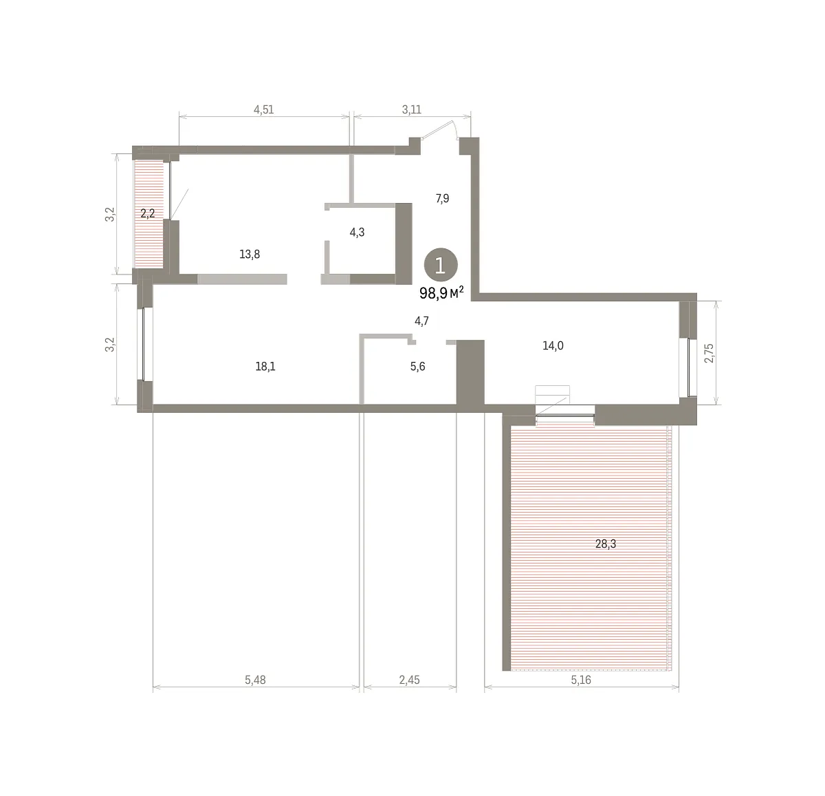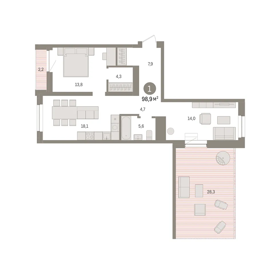Общая площадь 98.9 м2