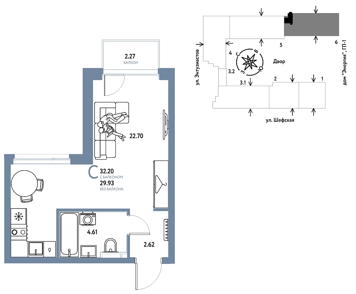 Купить новую квартиру-студию 32.2 м² на 4/24 этаже в ЖК «Страна.Энтузиастов», г. Тюмень за 6088889 ₽ | Агентство недвижимости «Вплюсе.Топ» — Недвижимость России