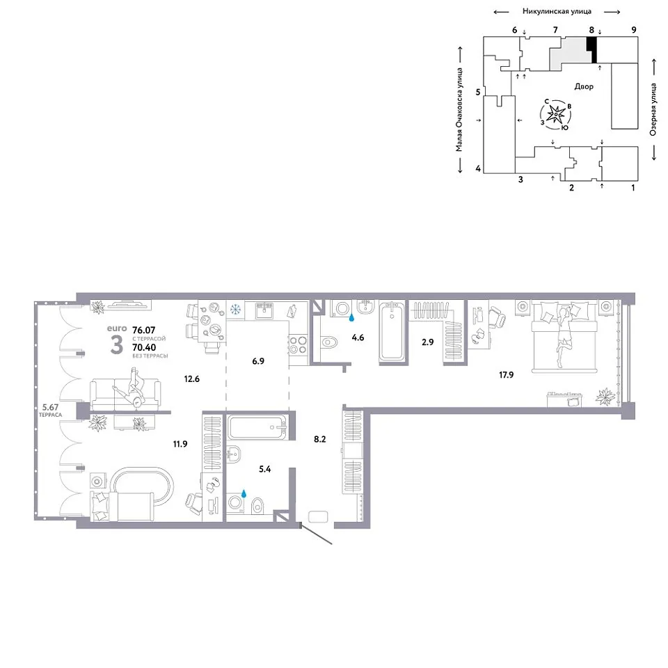 Купить новую трехкомнатную квартиру 76.07 м² на 8/30 этаже в ЖК «Страна.Озёрная», г. Тюмень за 65720000 ₽ | Агентство недвижимости «Вплюсе.Топ» — Недвижимость России