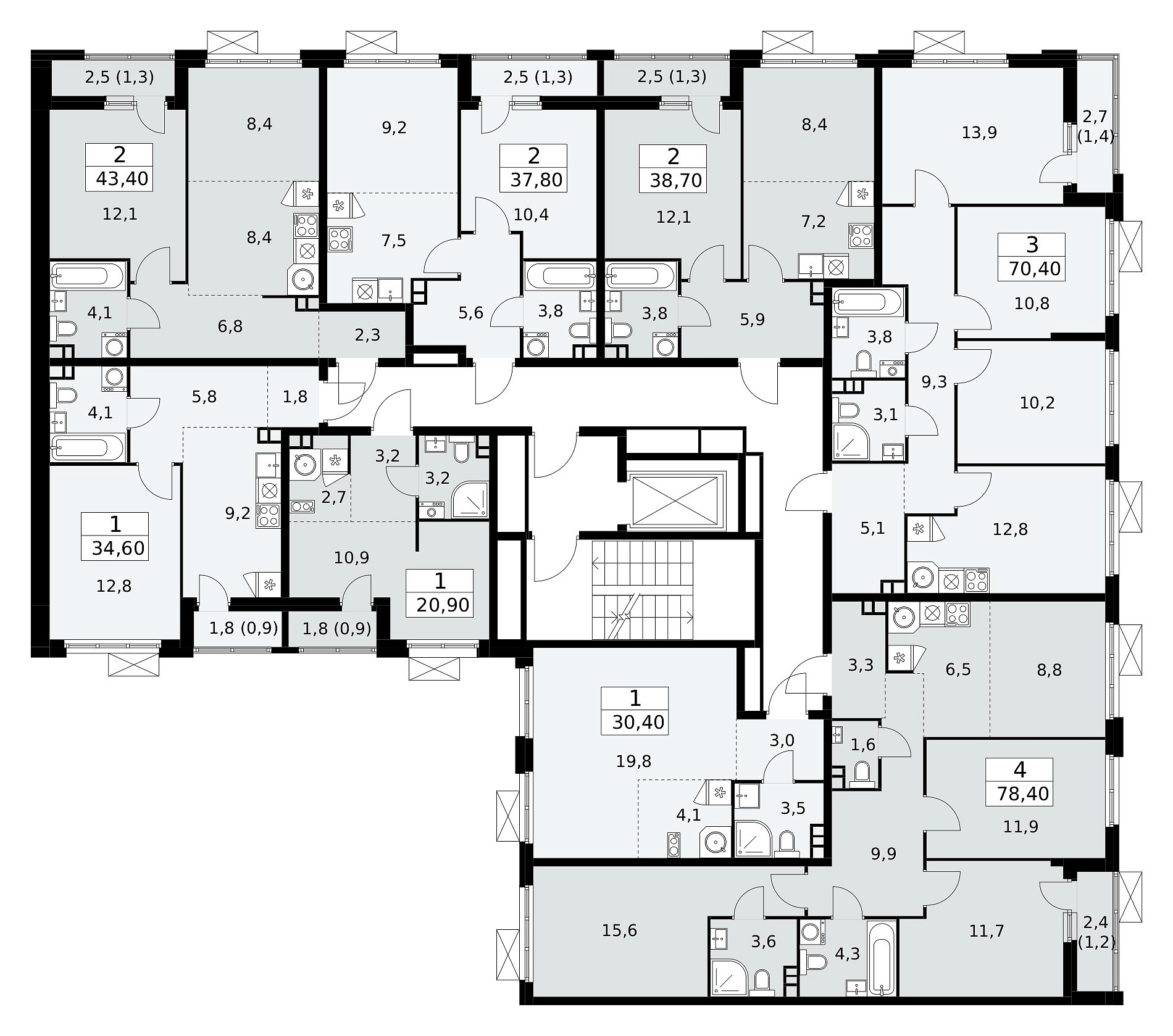 Площадь (общ/жил/кух), м2: 38.9/—/5.4