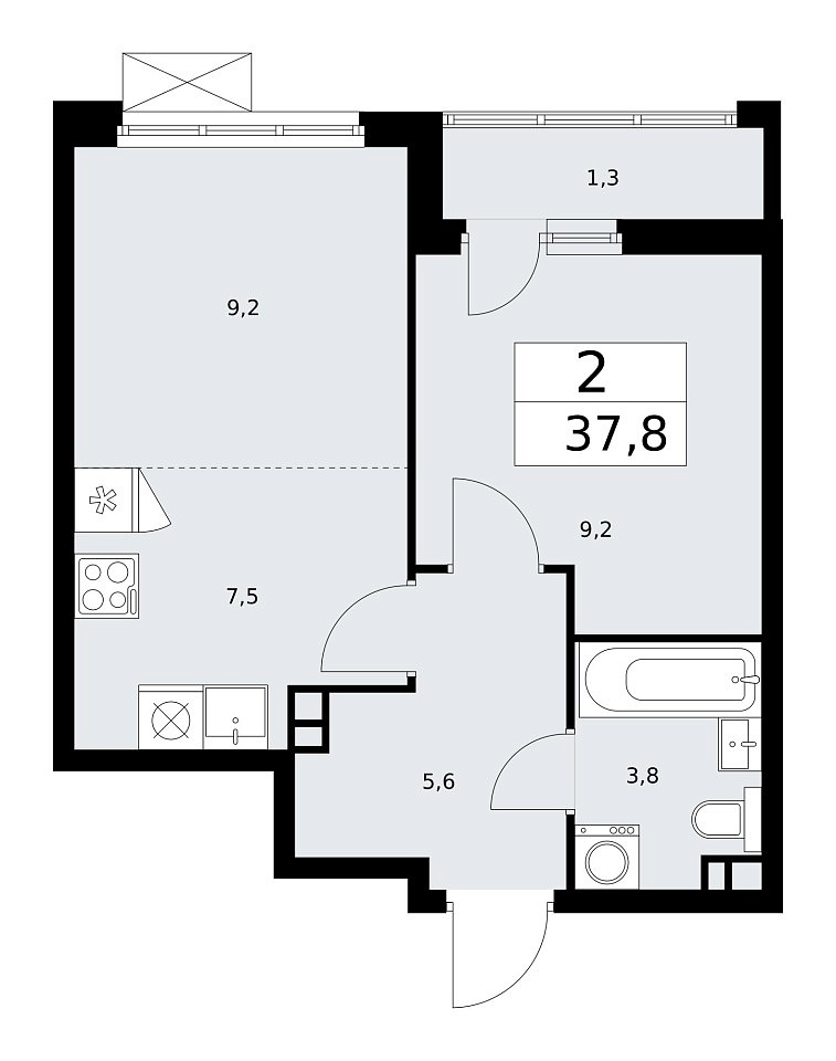 Площадь (общ/жил/кух), м2: 33.7/—/9.6