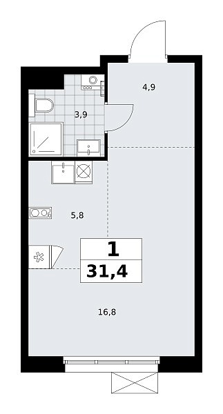 Общая площадь 31.4 м2
