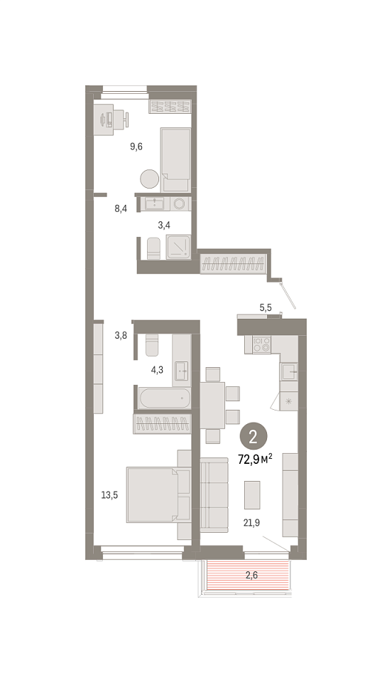 Количество комнат 2