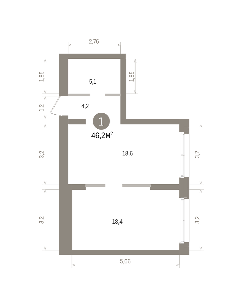 Площадь (общ/жил/кух), м2: 44.06/13.44/18.33