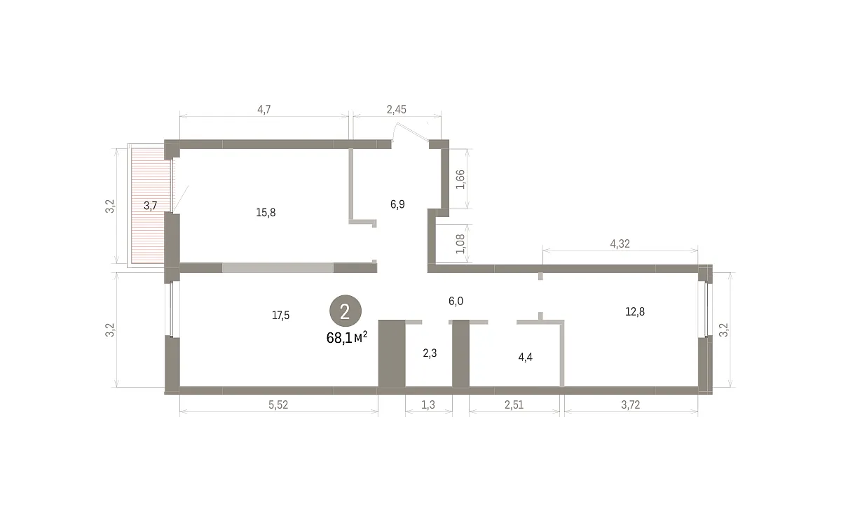 Площадь (общ/жил/кух), м2: 42.38/13.41/17.71