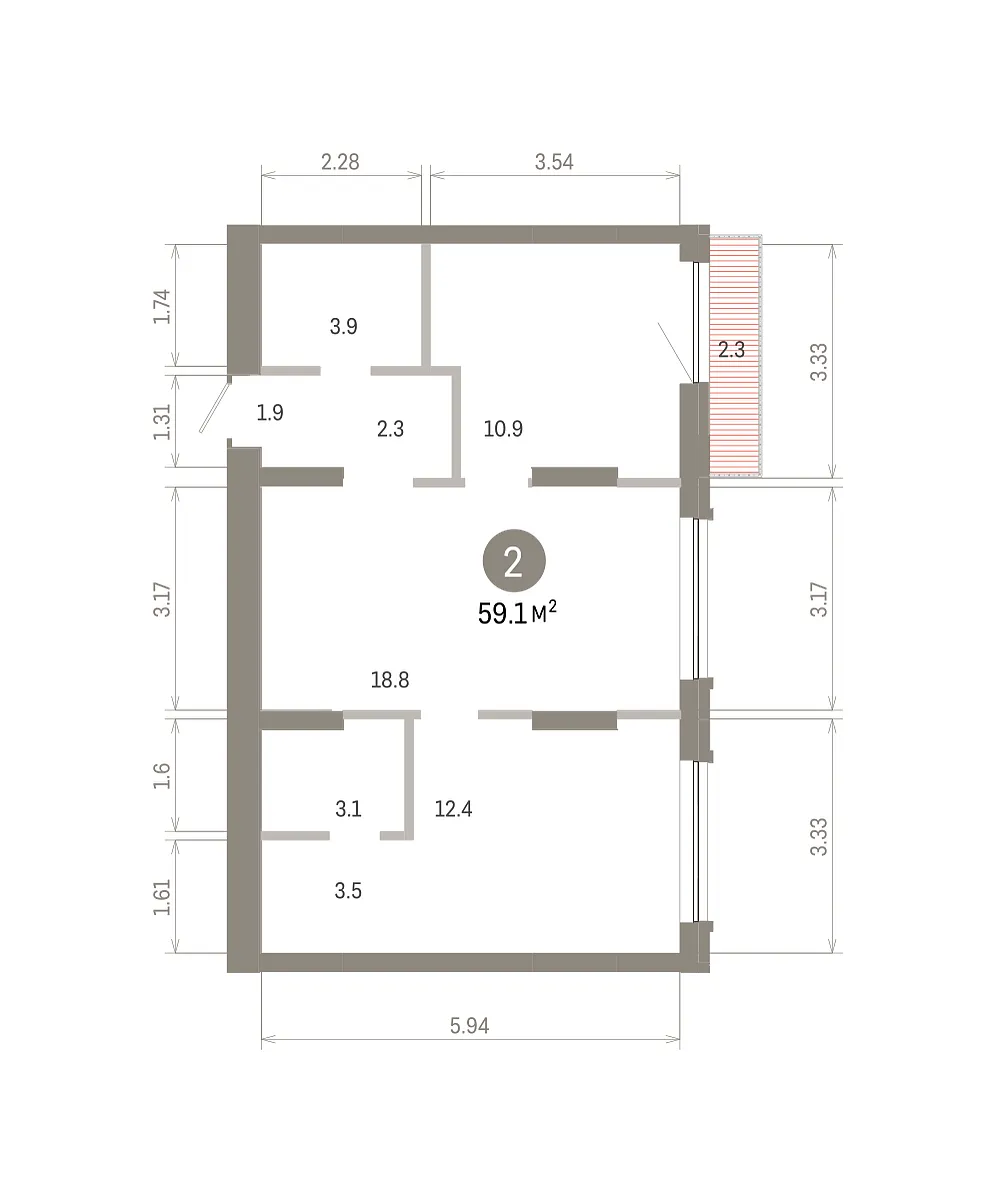 Площадь (общ/жил/кух), м2: 59.11/19.67/16.64