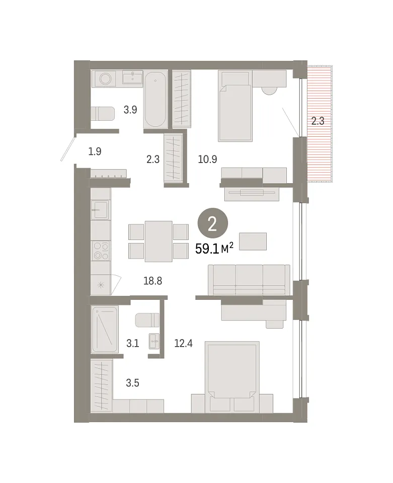 Купить новую двухкомнатную квартиру 59.09 м² на 2/7 этаже в ЖК «Октябрьский на Туре», г. Тюмень за 8460000 ₽ | Агентство недвижимости «Вплюсе.Топ» — Недвижимость России