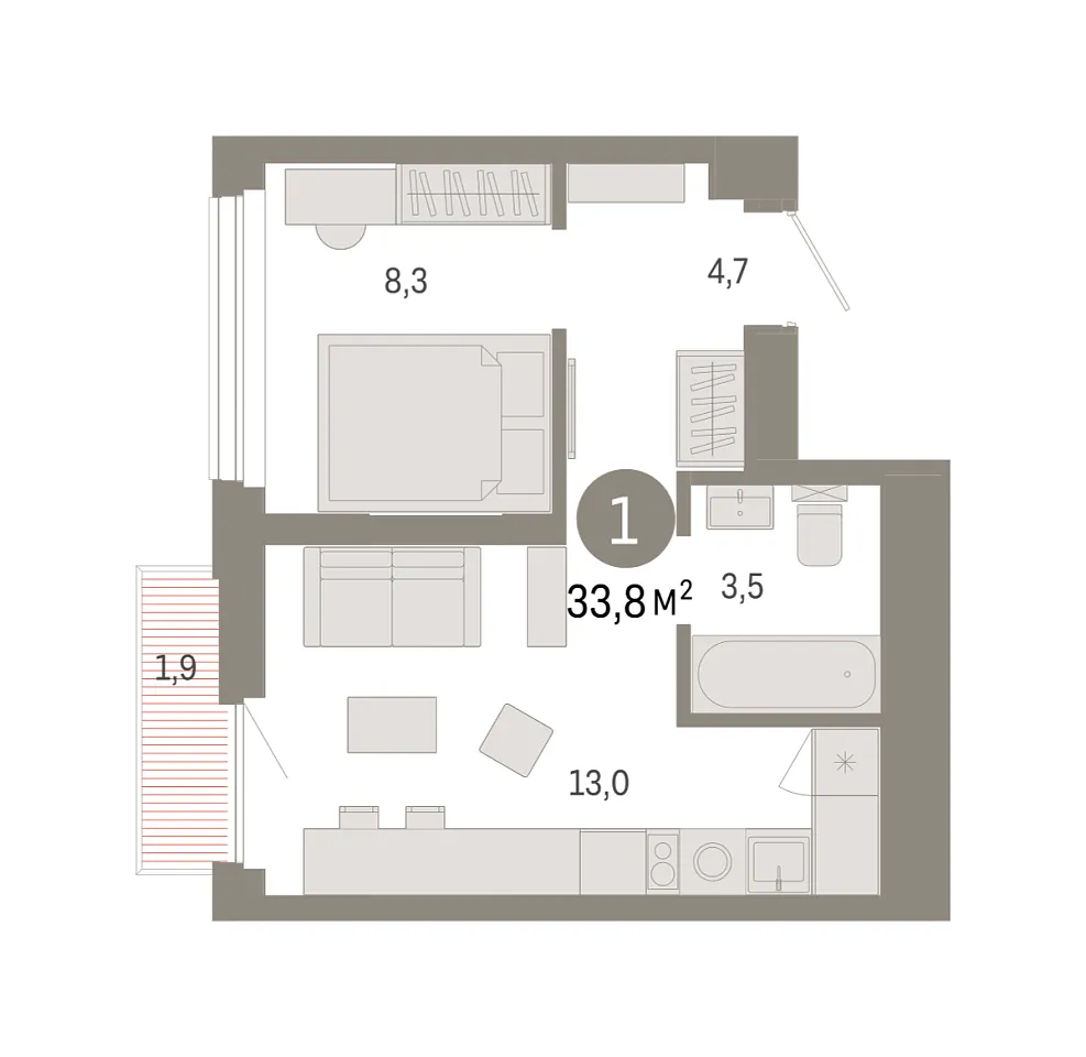 Площадь (общ/жил/кух), м2: 34.19/34.19/7.9