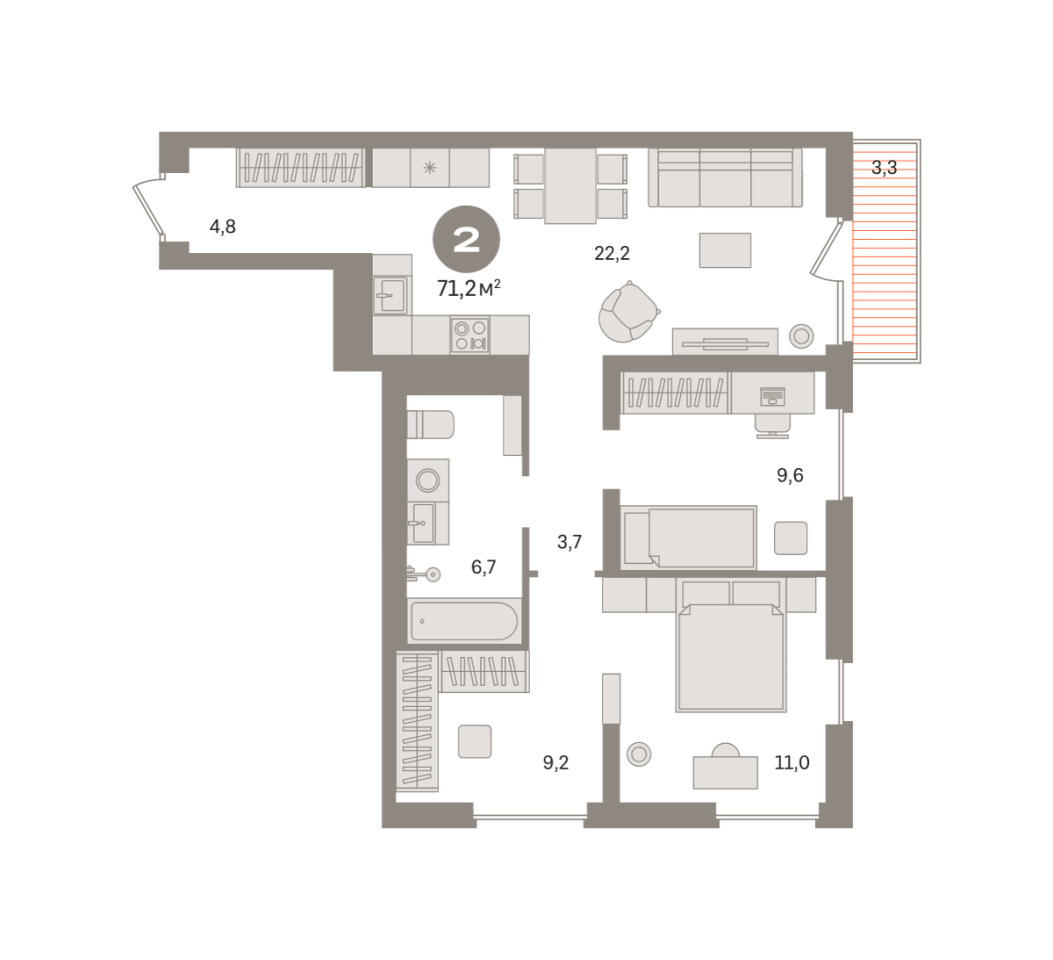 Купить новую двухкомнатную квартиру 71.24 м² на 3/8 этаже в ЖК «Северный квартал», г. Тюмень за 8920000 ₽ | Агентство недвижимости «Вплюсе.Топ» — Агентство недвижимости "Вплюсе.Топ"