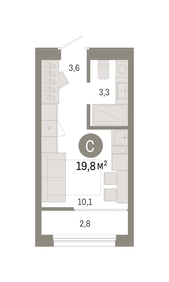 Площадь (общ/жил/кух), м2: 19.82/11.42/2.25