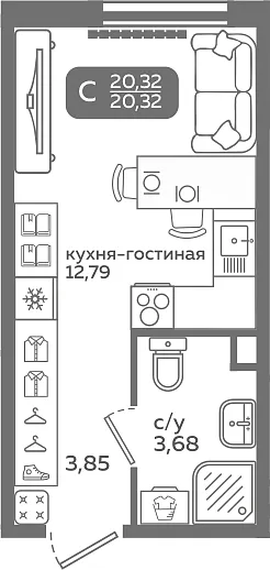 Площадь (общ/жил/кух), м2: 19.68/—/12.79