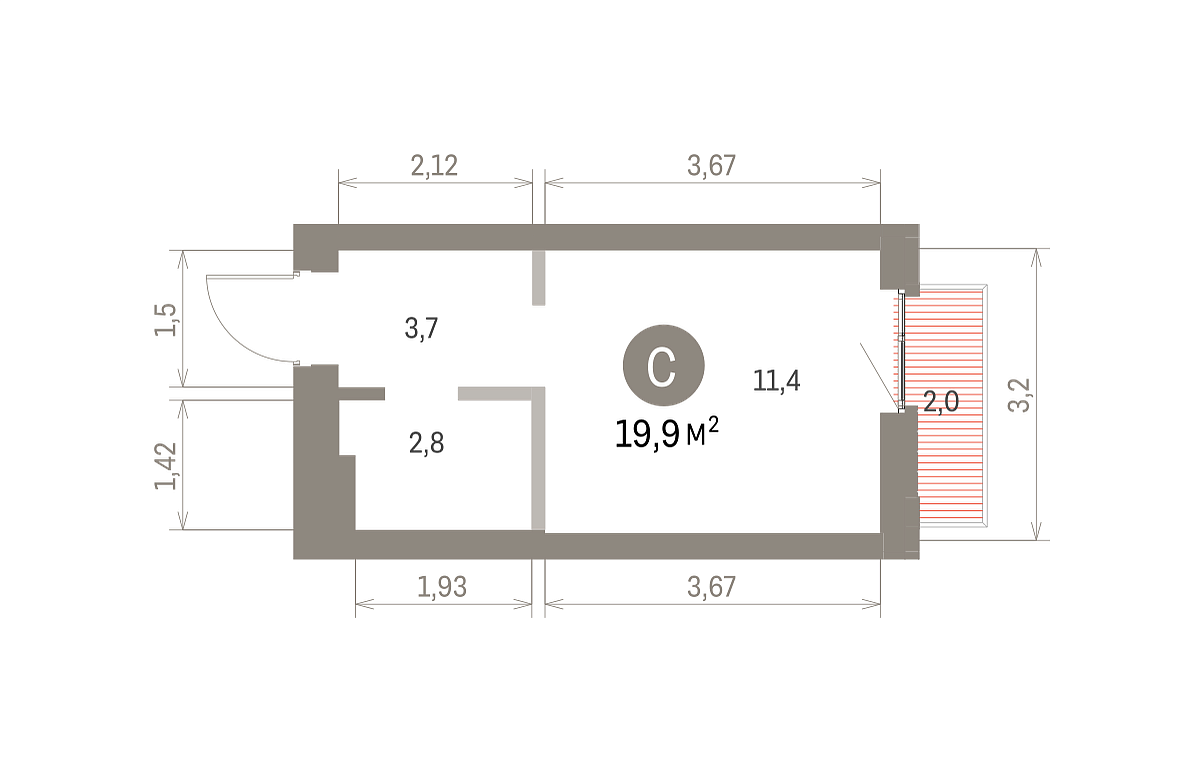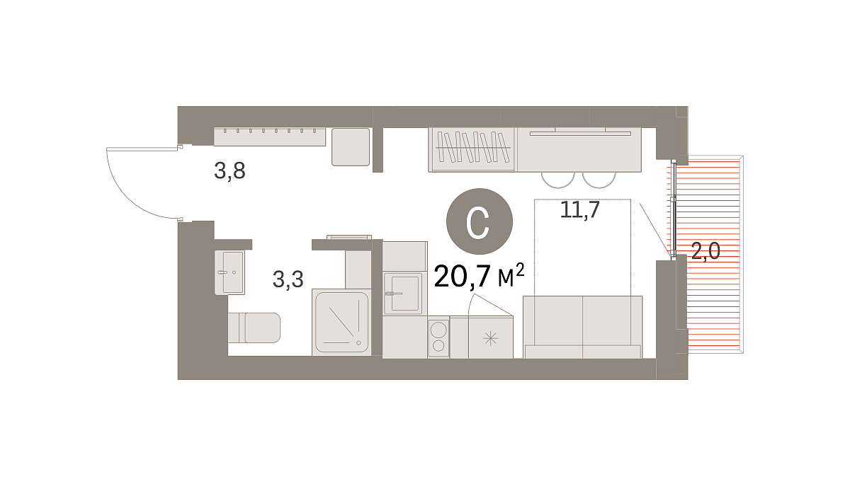 Площадь (общ/жил/кух), м2: 20.68/12.4/3.02