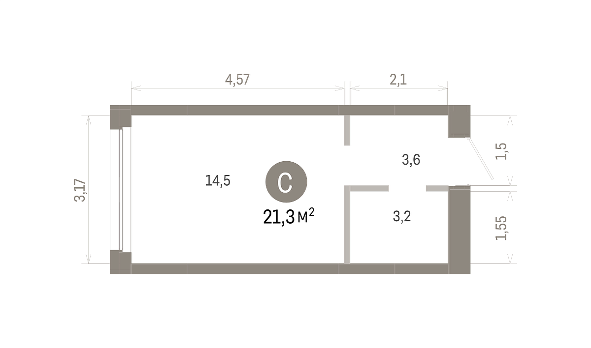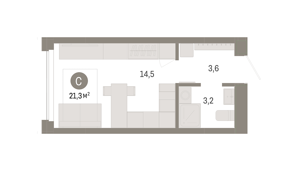 Общая площадь 21.3 м2