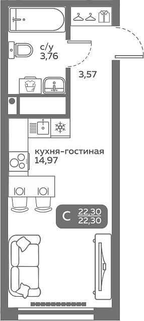 Площадь (общ/жил/кух), м2: 21.29/—/13.93