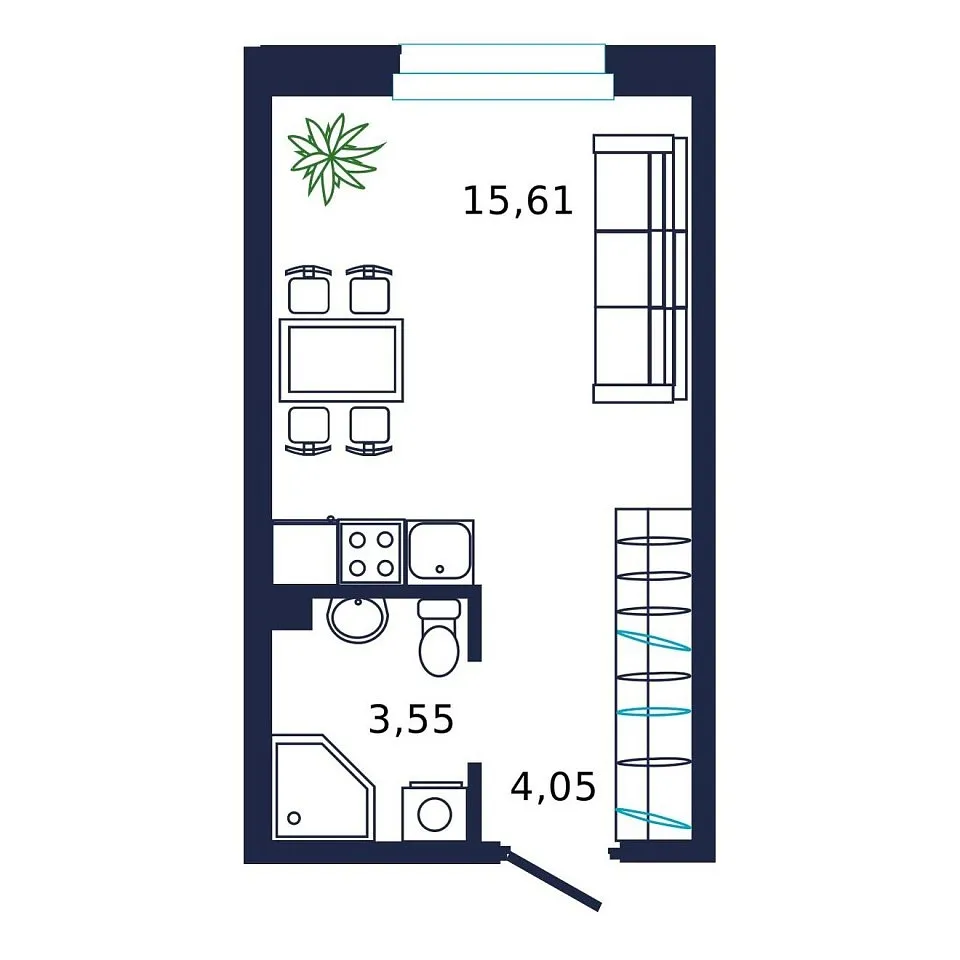Площадь (общ/жил/кух), м2: 23/15.61/—